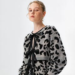 Leopard Print Bow Tie Knitted Cardigan