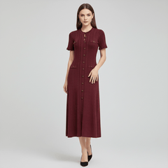 Elevate your wardrobe with this elegant viscose knitted long dress, designed with a refined pleated silhouette and sleek tight-fit skirt that beautifully enhances your shape. The hollow-out craftsmanship paired with subtle geometric patterns adds a touch of sophistication, while the mid-rise waist ensures a clean, flattering finish. Perfect for women who love a polished, socialite-inspired look, this dress seamlessly transitions from daytime chic to evening elegance.